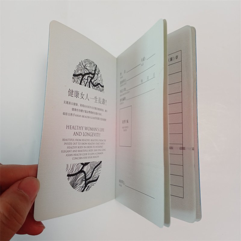 此款防偽會員證書,封皮是用藍色皮紋仿皮裱250克白卡,燙金,內頁采用防偽軟件設計的彩虹漸變防偽底紋,藍紅藍,印刷的時候采用專色彩虹印刷,紙張選用的是造紙時,就加入了熊貓竹子水印圖案和銀線的安全線防偽水印紙。